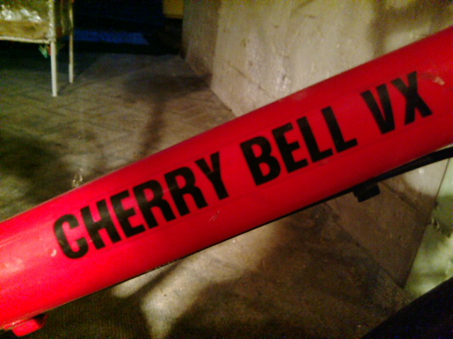 『何て書いてんのかなー・・・チェリー・・ん?CHERRY? いいねこのチャリ(←